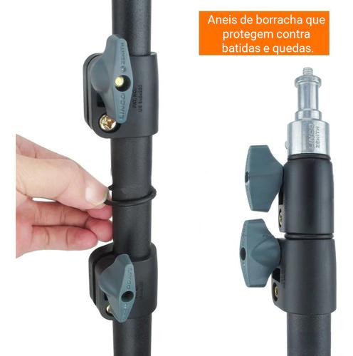 Sistema de travamento seguro: inclui anéis de borracha entre as seções, funcionando como amortecedores contra batidas e quedas.